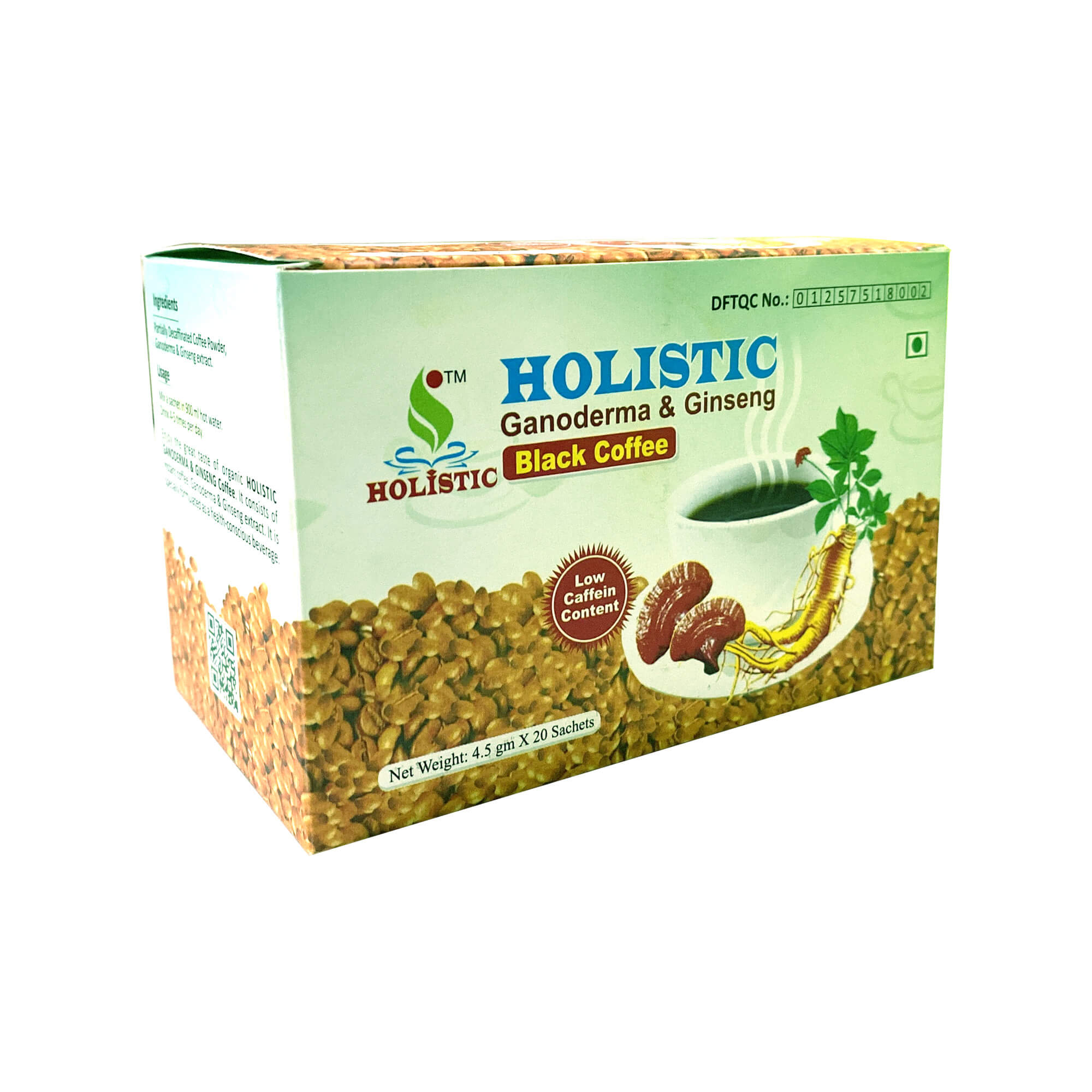 Ganoderma and ginseng black coffee provides antioxidants, diterpenes, ganoderic acid, gensinosides, etc. to our body. The caffeine content of the product is optimized for our body.